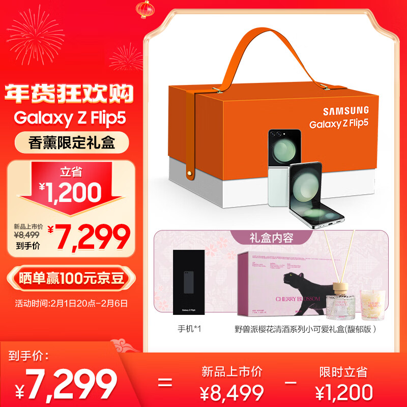三星 SAMSUNG Galaxy Z Flip5 5G折叠手机 香薰限定礼盒 8GB+512GB 冰薄荷价格:7299.00元!