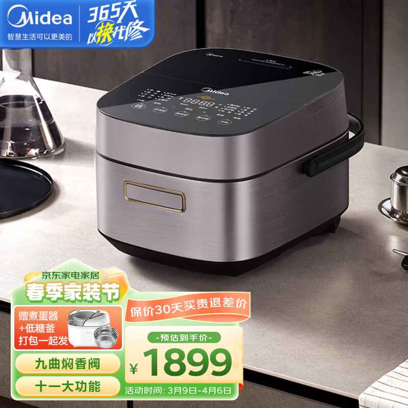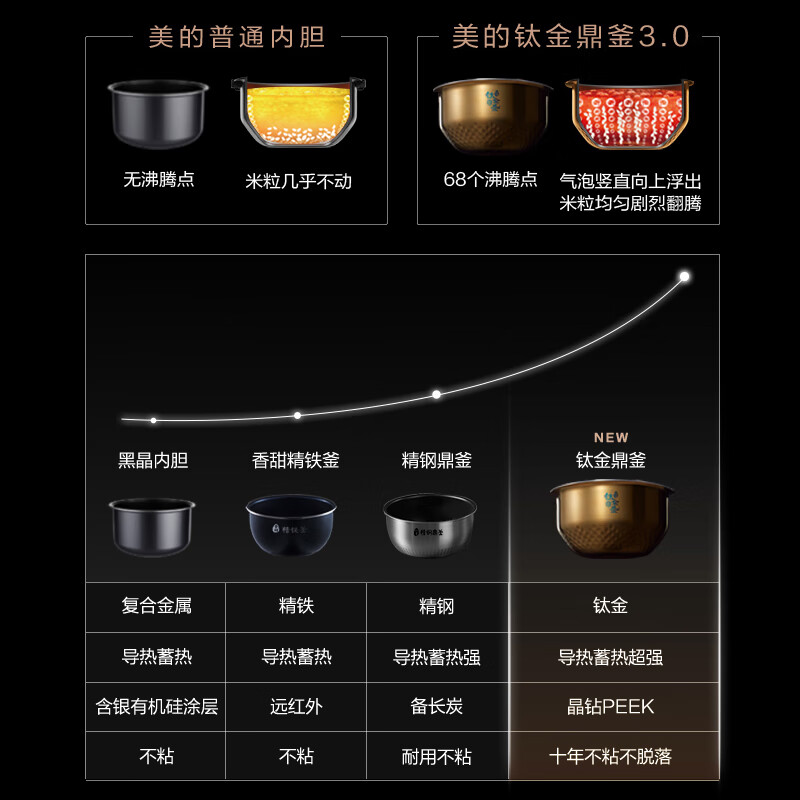 美的(Midea)赤炎臻香多段IH立体包裹发热顶盖无水智能电饭煲家用4L钛金鼎釜九曲焖香EFB4022H (线下同款)价格:2179.00元!