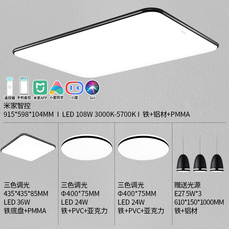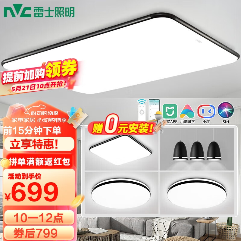 雷士(NVC)吸顶灯米家智能客厅大灯现代奶油风卧室餐厅led照明套餐黑色极光A价格:1349.00元!