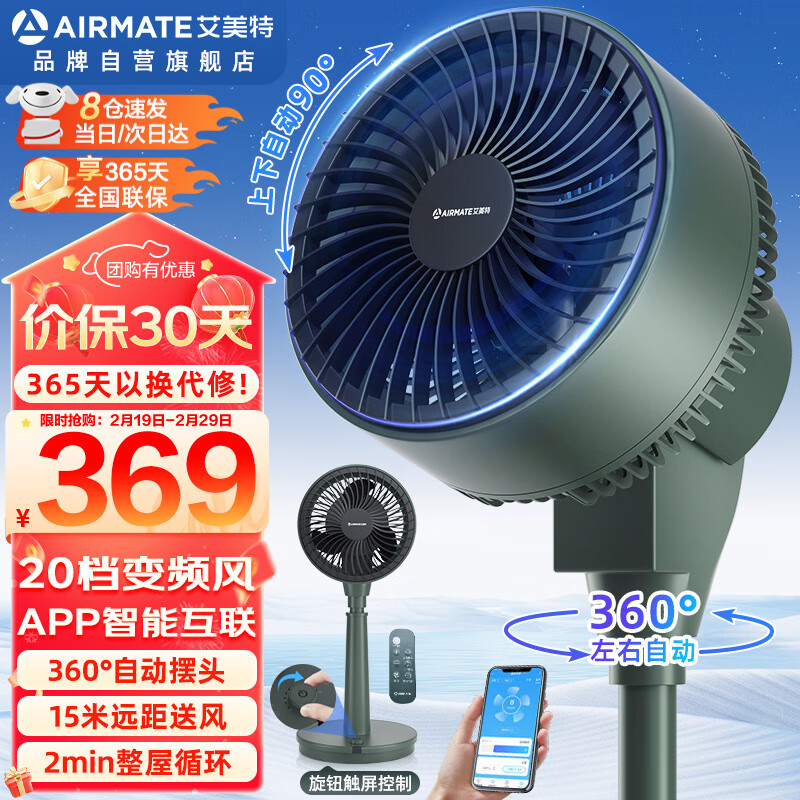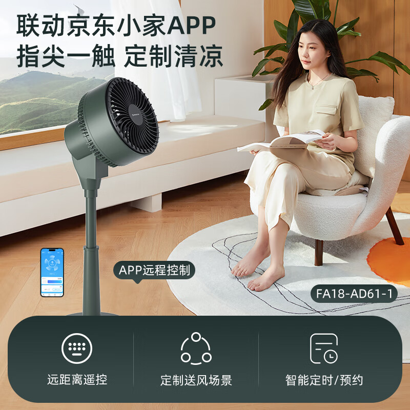 艾美特(AIRMATE)【四季可用】京东小家APP智能空气循环扇电风扇家用20档直流变频360度自动摇头台立两用落地式风扇 (京东小家APP智能互联WIFI款)AD61-1价格:399.00元!