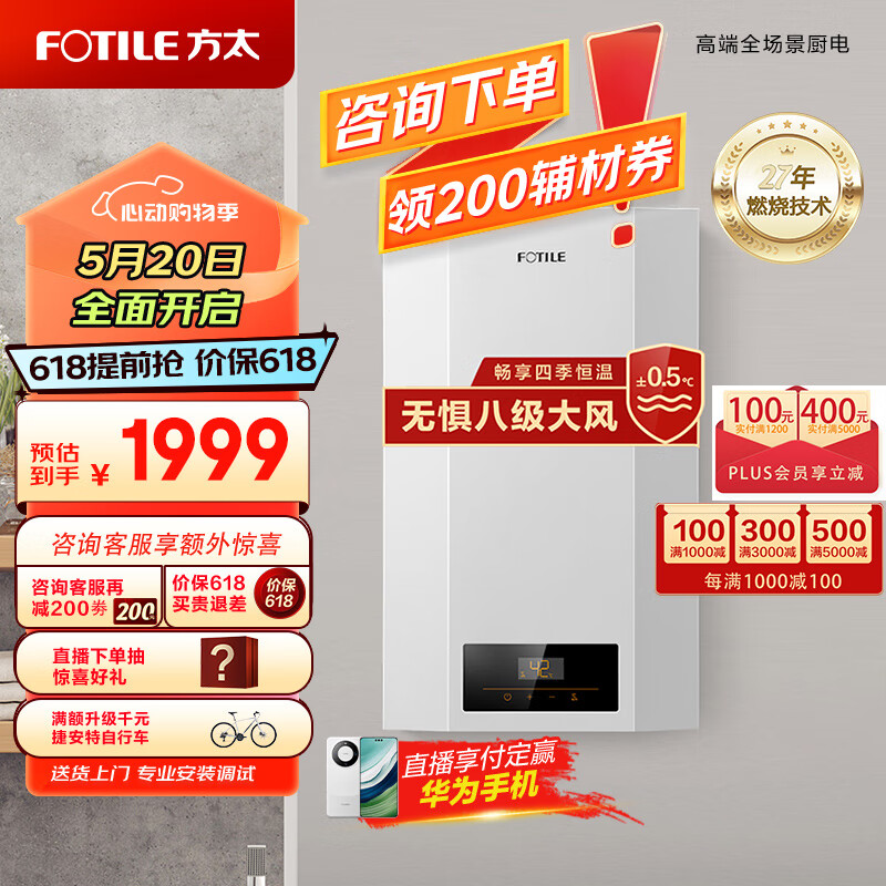 方太13升天然气燃气热水器 家用强排式 智能变频恒温 高层抗风Max系列低水压启动 JSQ25-P13D1-FR价格:2199.00元!