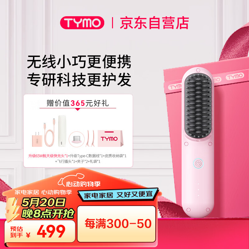 TYMO【周扬青推荐】第4代无线直发梳负离子护发不伤发便携两用持久造型直板夹 520送女生节生日礼物价格:596.73元!