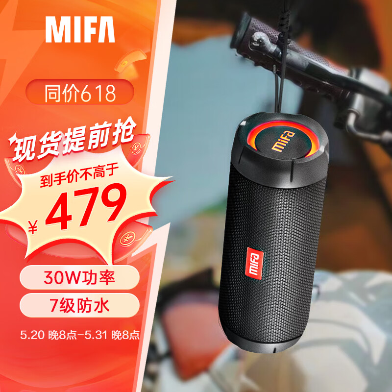 MIFA WildRod无线蓝牙音箱超重低音炮骑行车载便携式插卡音箱户外随身运动迷你防水露营小音响大音量黑价格:559.00元!