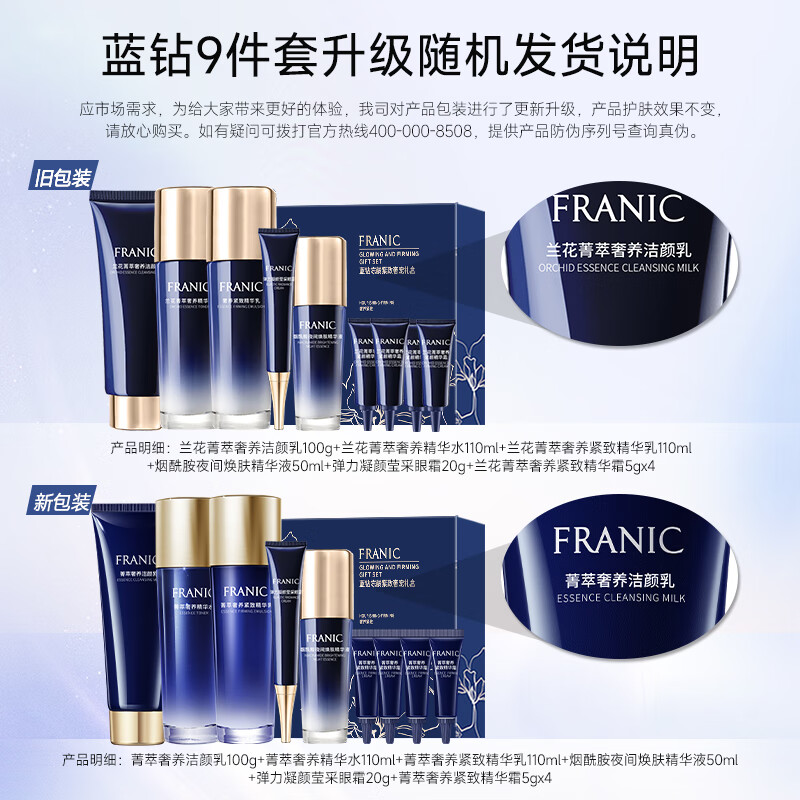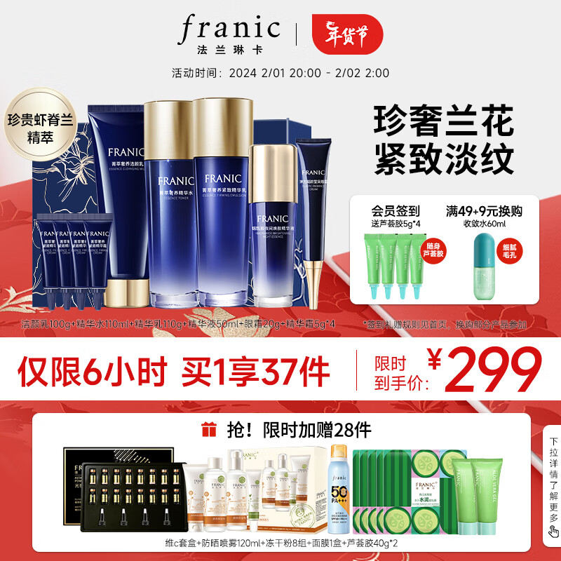 法兰琳卡(FRANIC)护肤品套装护肤礼盒 蓝钻紧致抗皱提拉水乳化妆品全套价格:299.00元!