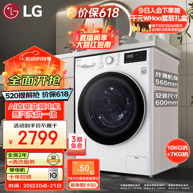 LG纤慧系列升级 10KG超薄洗烘一体机家用全自动洗衣机蒸汽除菌14分钟快洗超薄机身白色 FCY10R4W价格:3219.00元!