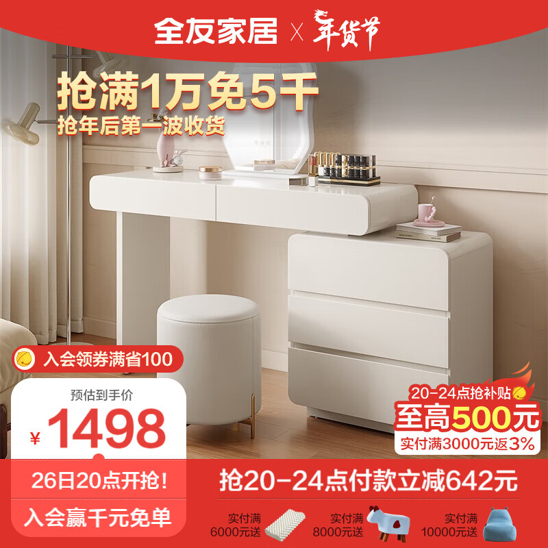 全友家居 梳妆台现代简约可伸缩转角智能触屏妆镜卧室化妆桌129553价格:2140.00元!