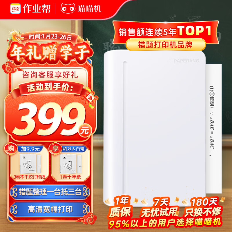 喵喵机错题打印机C1S高清超宽幅4英寸作业帮错题整理神器学生迷你便携口袋照片热敏打印机家用 白价格:399.00元!