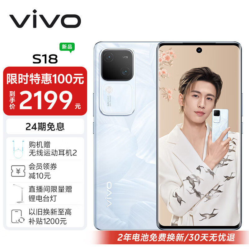 vivo S18 8GB+256GB 花似锦 后置影棚级柔光环 5000mAh超薄蓝海电池 第三代骁龙7 快充 拍照 手机价格:2299.00元!