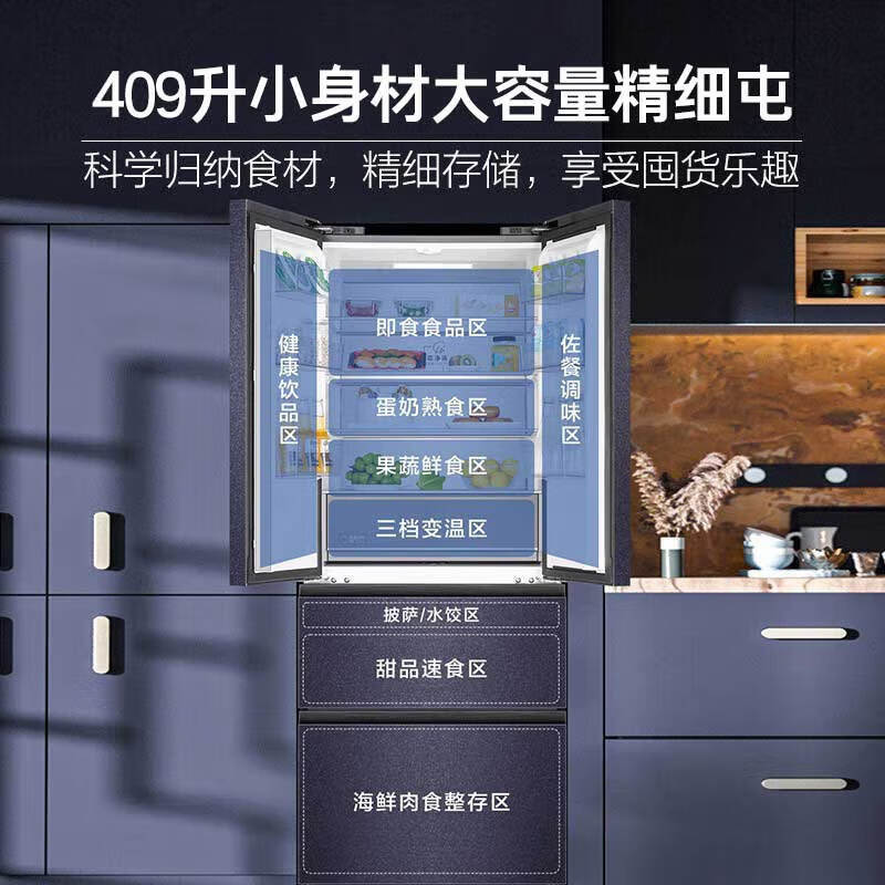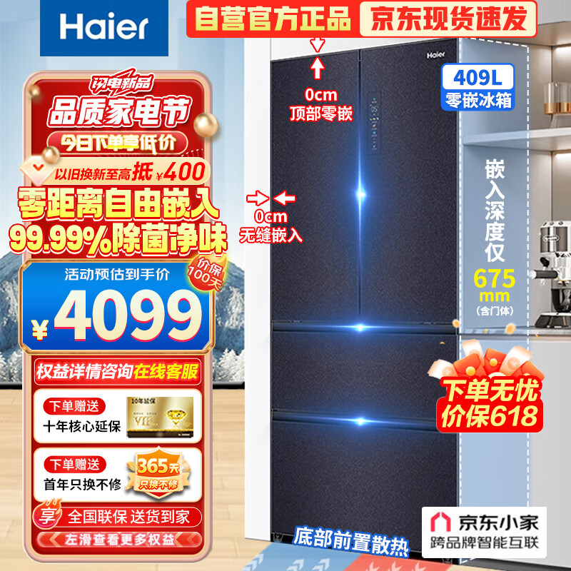 海尔(Haier)409L法式四开多门电冰箱一级能效节能零距离自由嵌入家用超薄零嵌入式底部散BCD-409WLHFD4DB8U1价格:4099.00元!