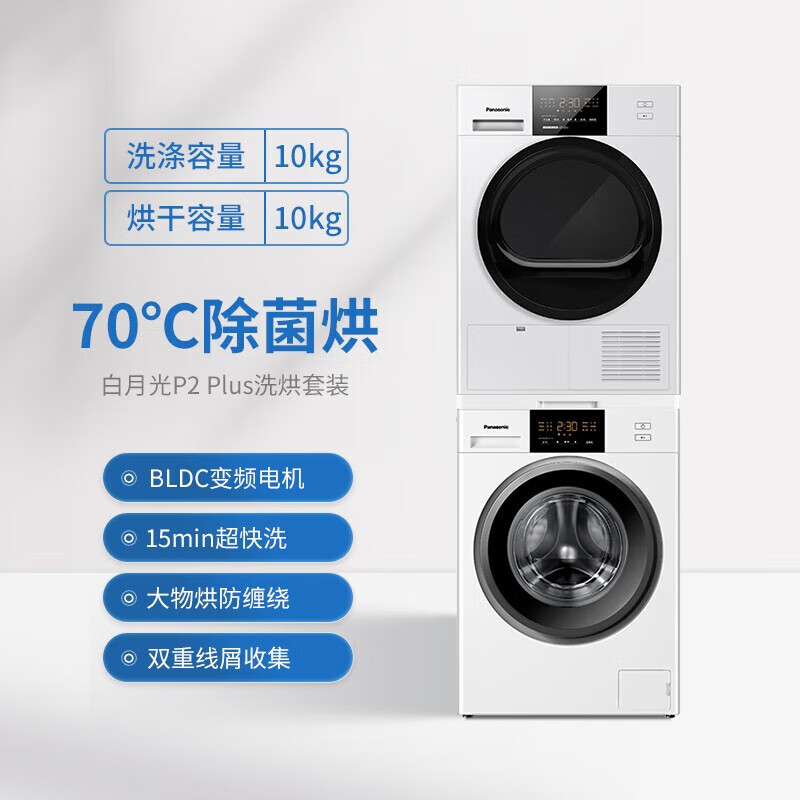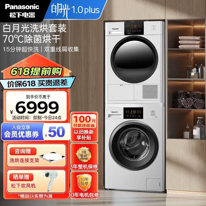 松下(Panasonic)白月光plus洗烘套装10+10大容量羊毛洗除菌快烘热泵免熨烫节水智能 N10P+EH10W价格:6999.00元!