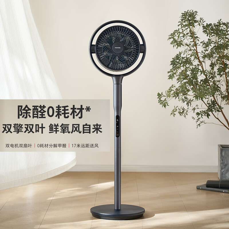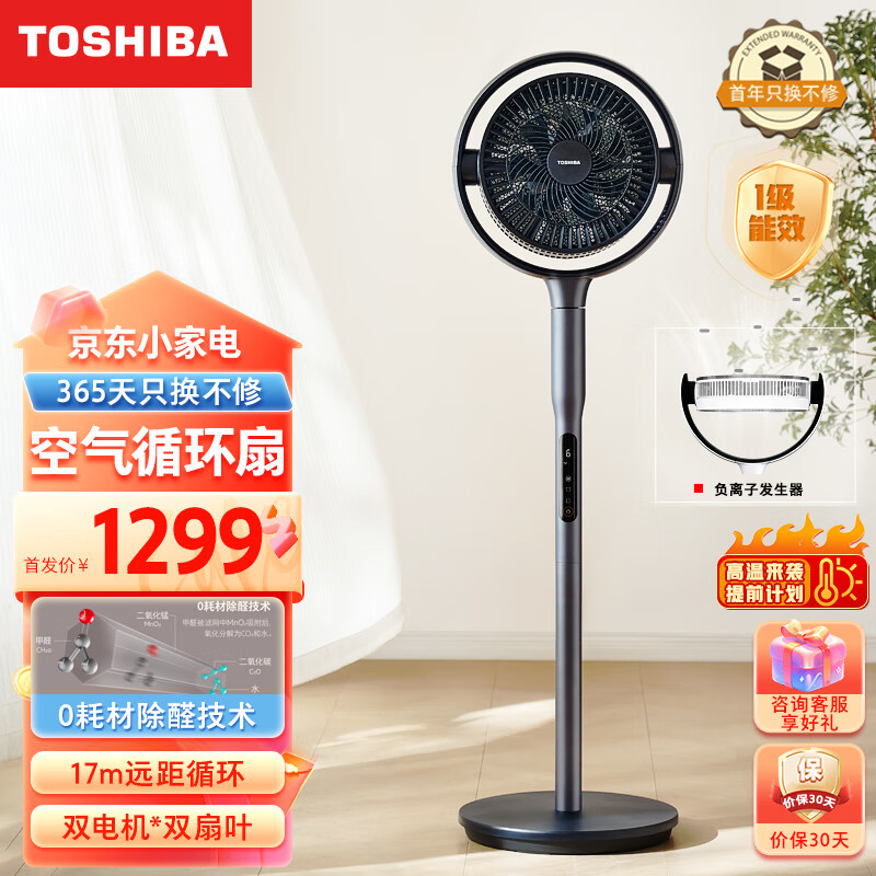 东芝(TOSHIBA)“花信风+”0耗材除醛负离子净化空气循环扇 双擎轻音电风扇遥控双叶落地扇空调扇900CN(H)价格:1419.00元!
