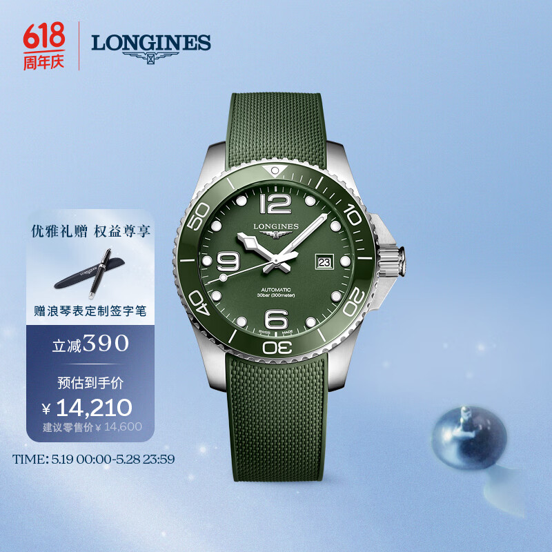 浪琴(LONGINES)瑞士手表 康卡斯潜水系列 机械橡胶男表 L37824069价格:14210.00元!