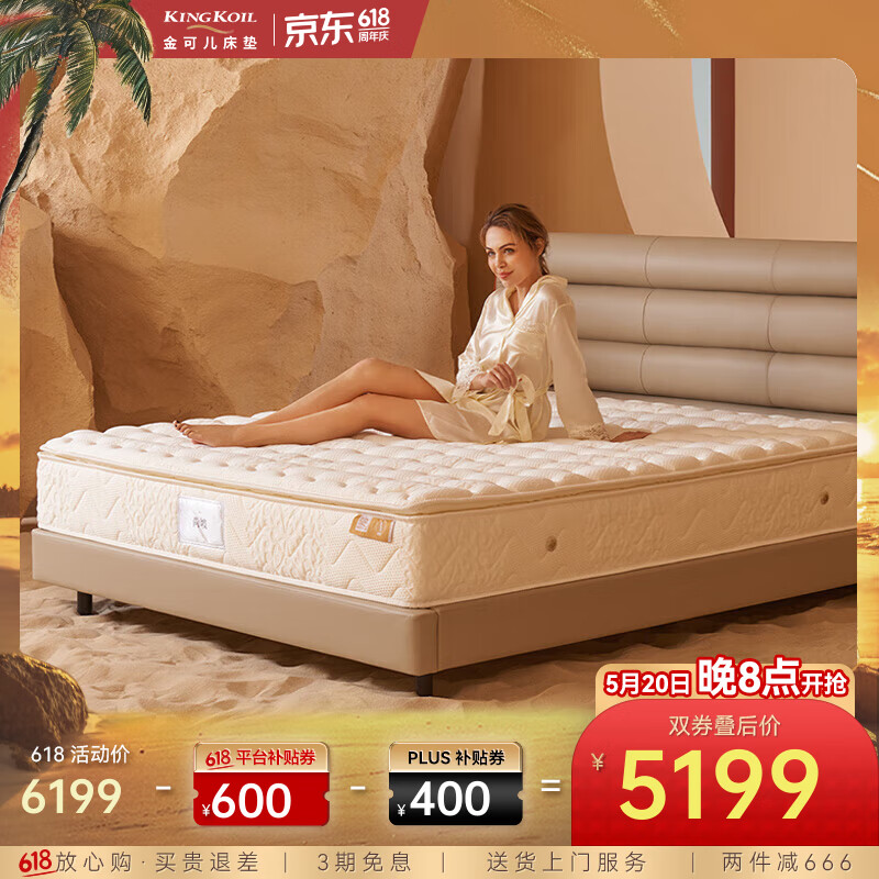 金可儿(Kingkoil)轻奢系列分区独袋弹簧床垫席梦思睡感偏硬尚坡升级款床垫1.8x2米价格:6199.00元!