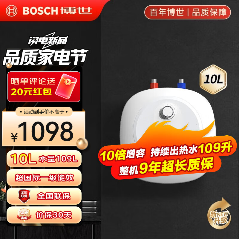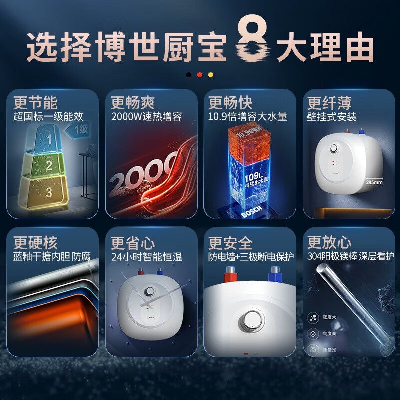 博世(BOSCH) 一级能效小厨宝 10升迷你电热水器 速热恒温 德国品质 小尺寸 多重防护TR 3100 T 10-2 MH价格:1098.00元!