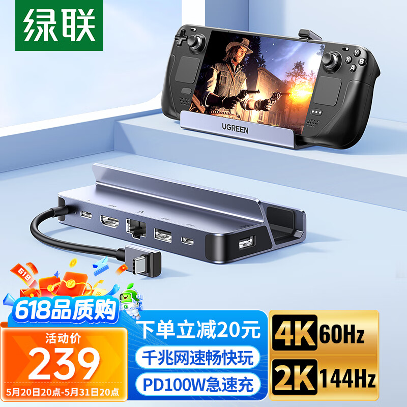 绿联(UGREEN)SteamDeck/ROG桌面支架扩展坞Type-C拓展坞掌机游戏底座HDMI转换器4K60Hz投屏千兆网口适用苹果15价格:239.00元!