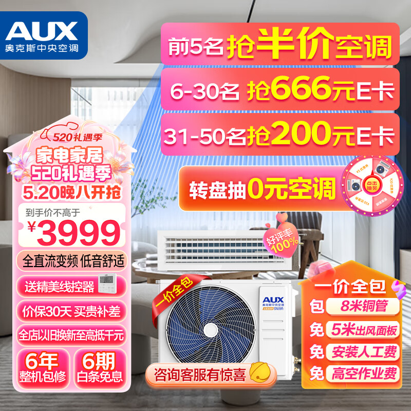奥克斯(AUX)中央空调风管机一拖一1.5匹 全直流变频 卡机卧室嵌入式空调 舒适侠 GR-36DW/BPR3DQ-SSX(B3)价格:3999.00元!