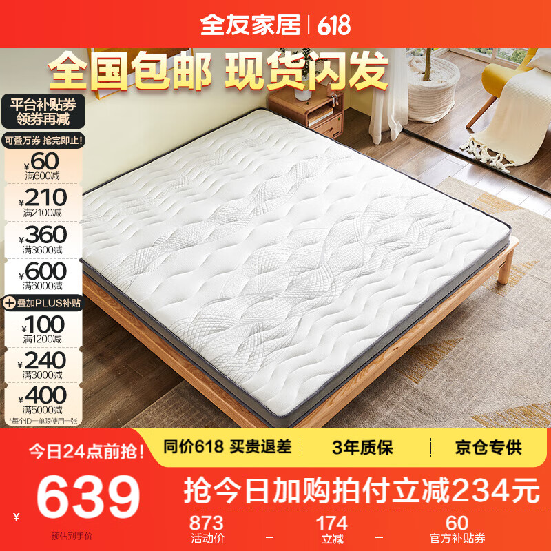 全友家居 天然环保椰棕床垫1.5x2米薄款偏硬家用榻榻米床垫子105189价格:873.75元!