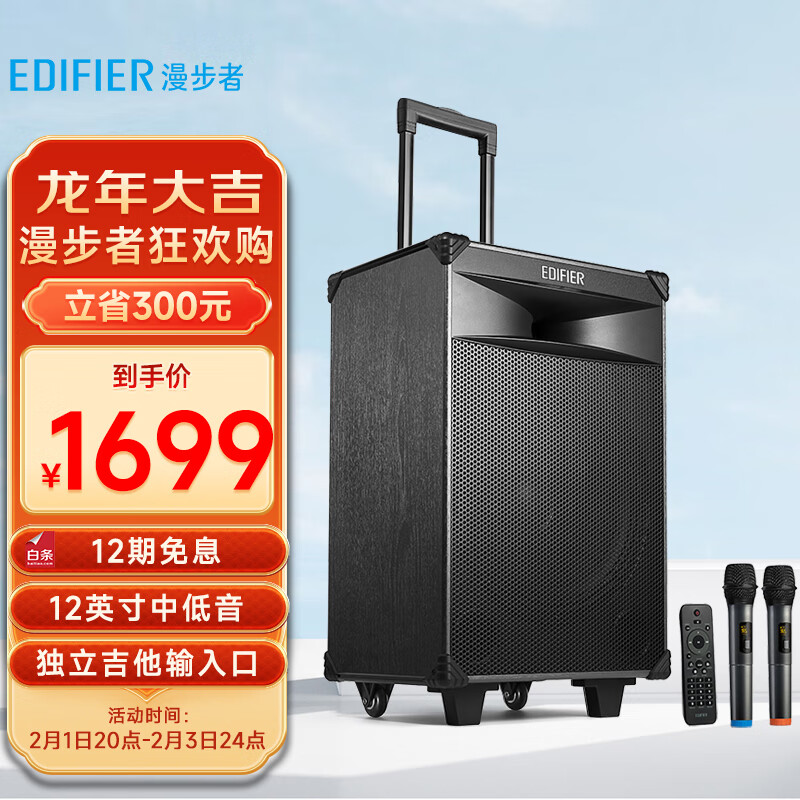 漫步者(EDIFIER)PW312 12英寸舞台级户外移动音箱 广场舞音箱 蓝牙拉杆音响 便携式音响 户外露营价格:1699.00元!
