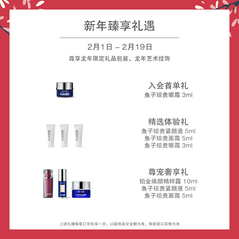 莱珀妮(La Prairie)鱼子精华明星仪典套装护肤品(眼霜20ml+面霜50ml) 新年礼物送女友价格:8430.00元!