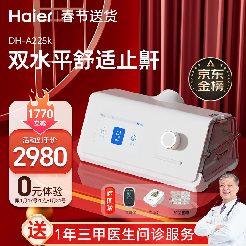 海尔(Haier)全自动双水平睡眠呼吸机 25打呼噜家用医用无创止鼾器DH-A225k 呼吸暂停矫正器价格:4750.00元!