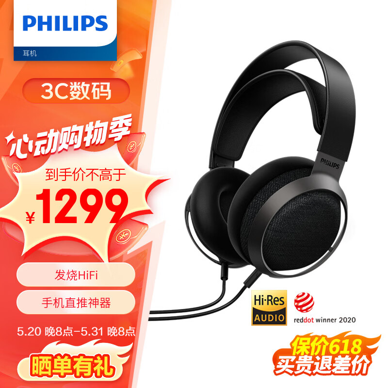 飞利浦(PHILIPS)头戴式耳机有线耳机旗舰级HiFi耳机 高保真音乐耳机 德国红点奖 安卓苹果手机直推X3价格:1299.00元!