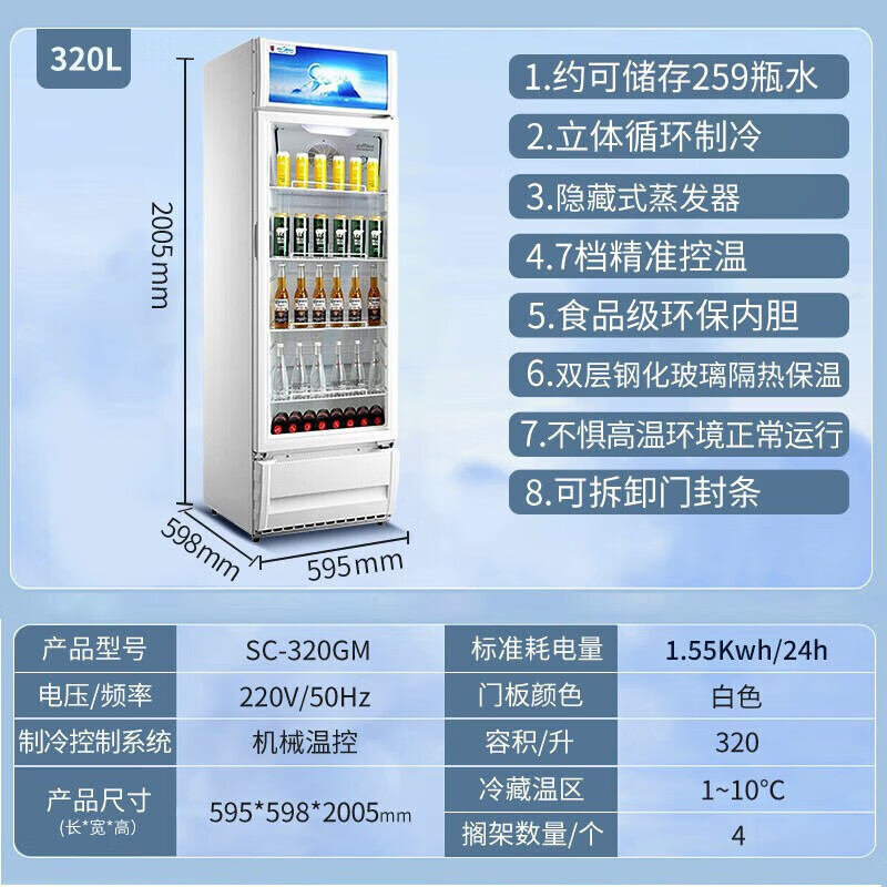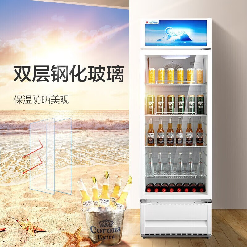美的320升立式单门商用展示柜 冷藏饮料茶叶保鲜冷柜 啤酒冷饮玻璃门冰柜 SC-320GM价格:1999.00元!
