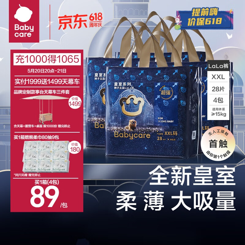 babycare皇冠LaLa裤皇室狮子王国拉拉裤婴儿尿不湿箱装XXL28*4包15-17kg价格:476.00元!