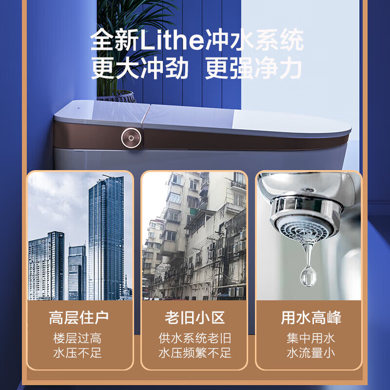 2、没有水压限制对高层很友好,安装师傅还给打扫卫生,马桶使用噪音低,颜值高,性价比超高,水量温度都很合适,好评