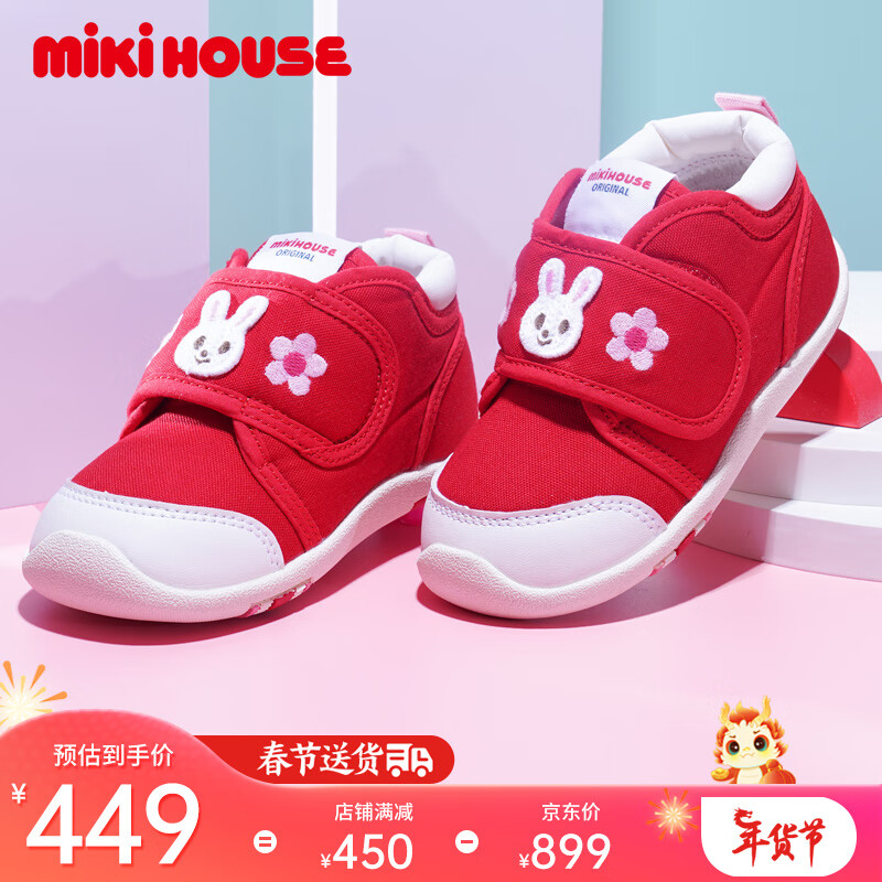 MIKIHOUSE限定款学步鞋男女童鞋匠心刺绣兔子学步鞋 红色 14.5cm价格:899.00元!