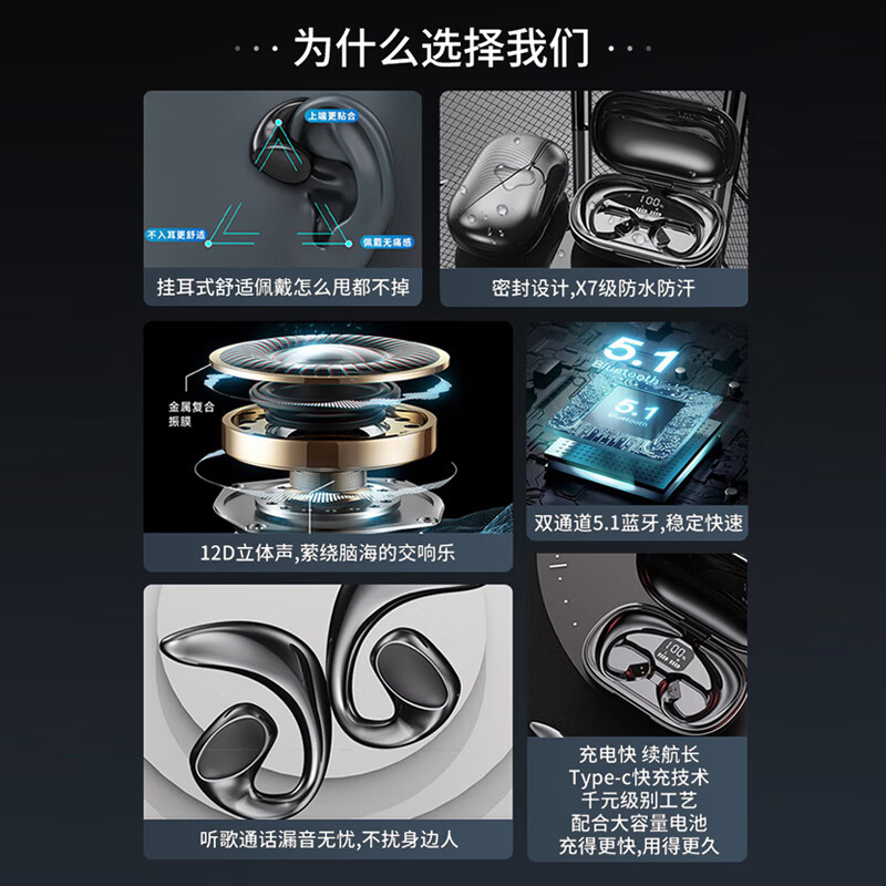 科沃【万人口碑推荐】蓝牙耳机 不入耳开放式运动耳机骨传导概念无线挂耳式跑步 适用于华为苹果价格:99.00元!