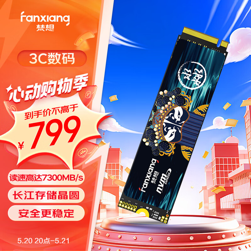梵想(FANXIANG)2TB SSD固态硬盘 M.2接口NVMe协议PCIe 4.0x4 长江存储晶圆 PS5台式机笔记本电脑扩展硬盘 S790C价格:799.00元!
