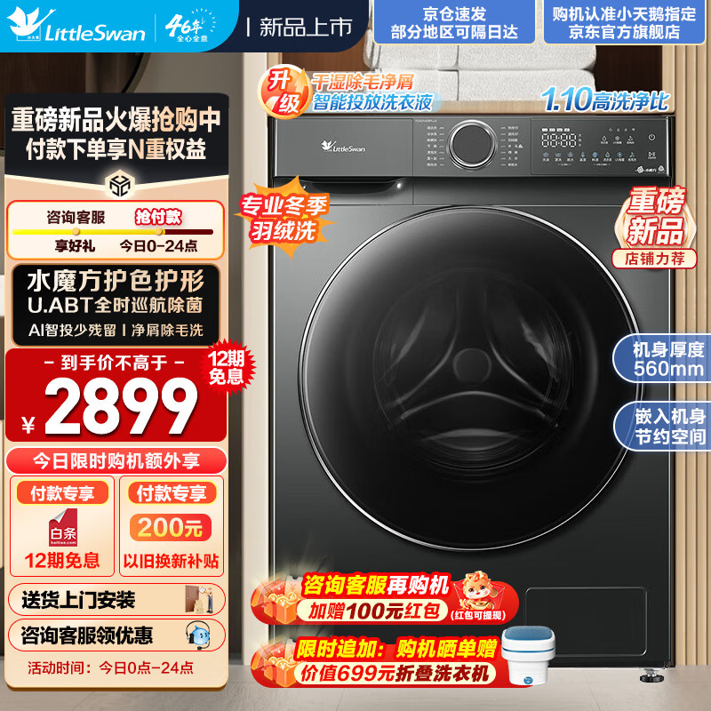 小天鹅(LittleSwan)滚筒洗衣机全自动 10公斤大容量水魔方护形护色防缠绕 智能变频内衣除菌1.1高洗净比 以旧换新 升级款滚筒价格:2899.00元!