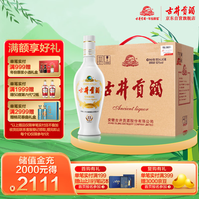 古井贡酒 乳玻贡 浓香型白酒 50度500ml*6瓶 整箱装 口粮酒价格:255.00元!