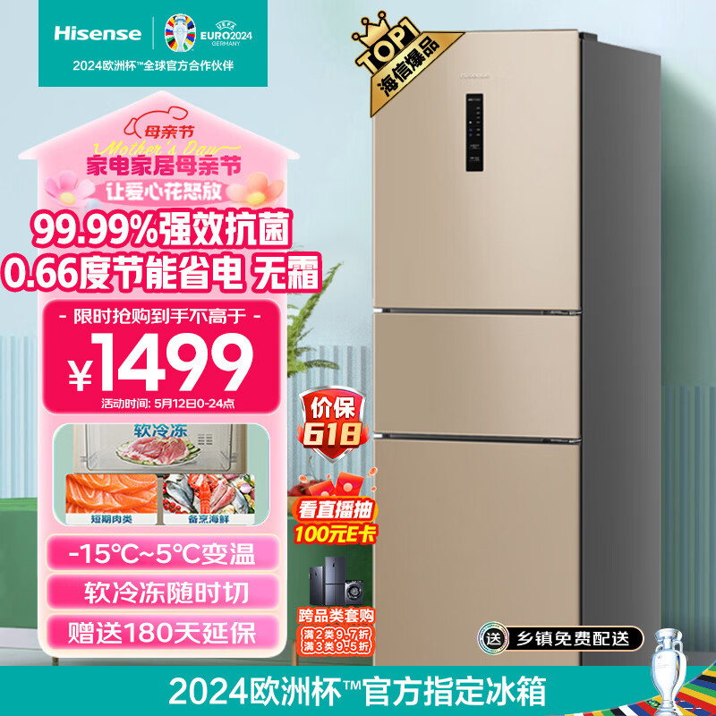 海信(Hisense)三开门冰箱小型无霜冰箱220L家用小户型租房用BCD-220WYK1DQ节能省电价格:1599.00元!