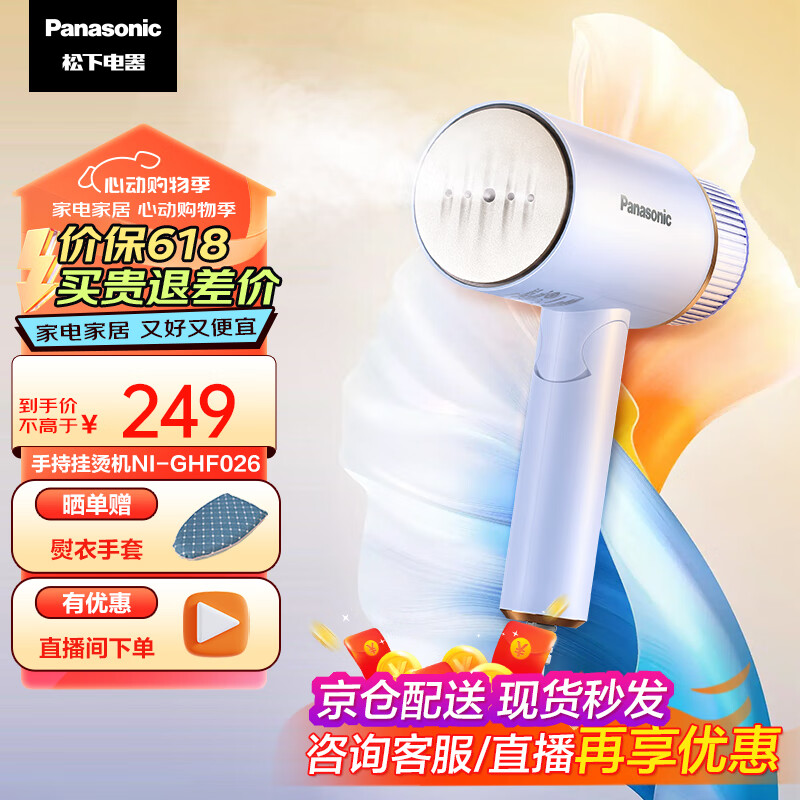 松下(Panasonic)挂烫机家用 熨斗 蒸汽挂烫机 便携 手持挂烫机 电熨斗 NI-GHF026 云雾蓝价格:276.00元!