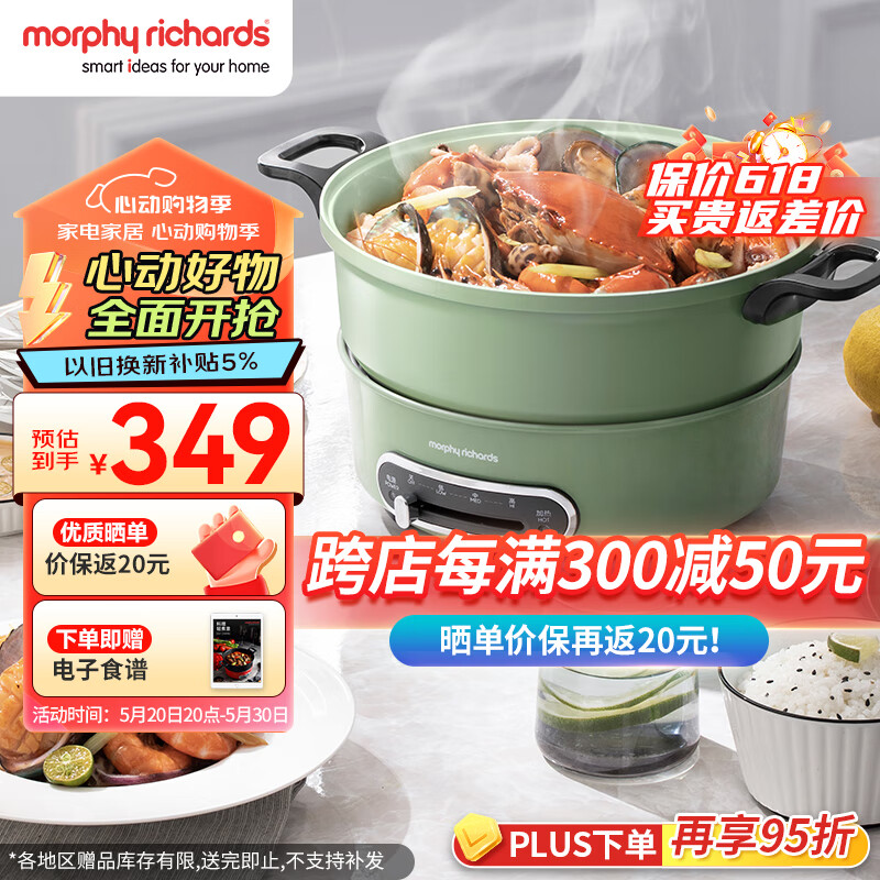 摩飞电器(Morphyrichards)电火锅 家用分体式电煮锅 烤涮一体多功能电炒锅电烧烤料理锅 3L电热火锅锅 MR9087 薄荷绿价格:399.00元!
