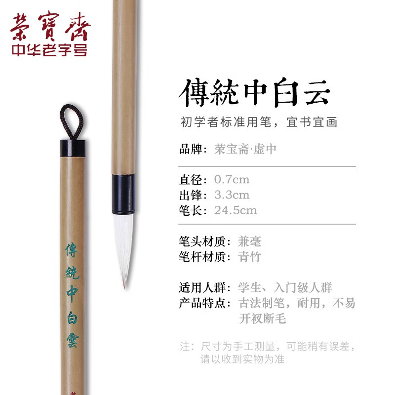 荣宝斋毛笔套装 文房四宝 毛笔字贴书法传统白云兼毫毛笔 初学练习学生工笔书画行楷书毛笔套装 单支中楷价格:30.00元!