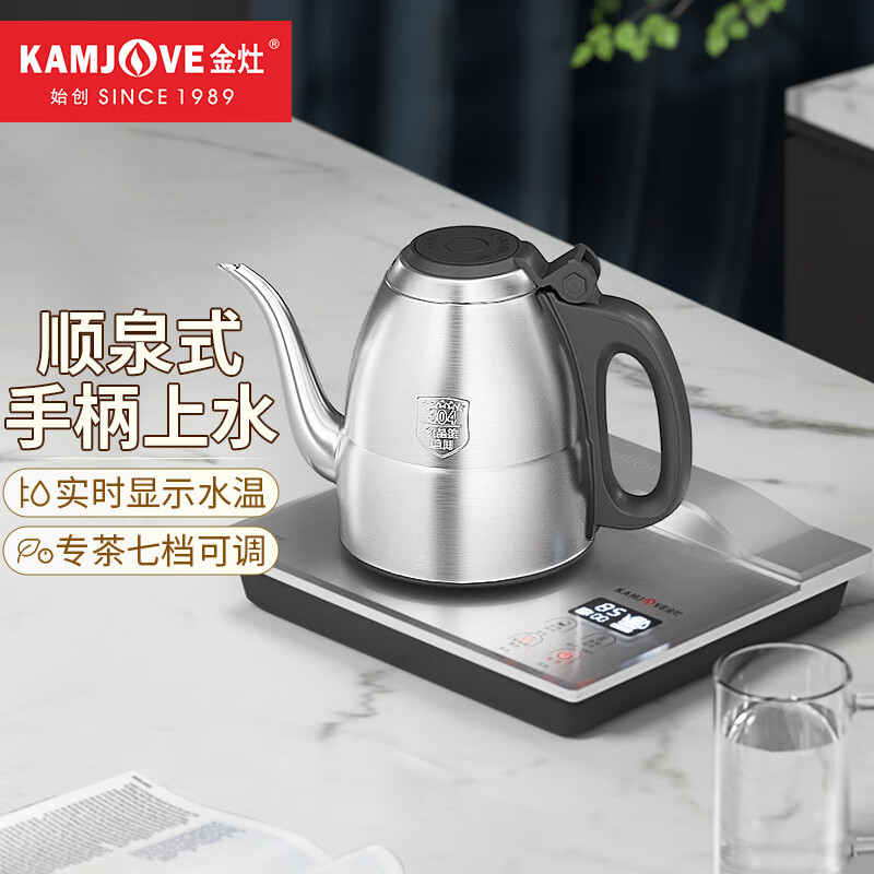 金灶(KAMJOVE)全自动上水电热水壶 智能手柄上水烧水壶 保温泡茶茶具 恒温电茶炉 F7银色版价格:338.00元!