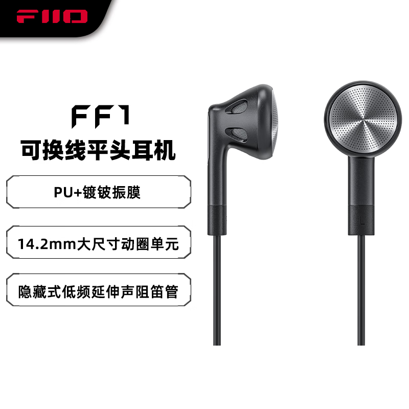 飞傲(FiiO)FF1镀铍振膜动圈金属平头耳机0.78双针可换耳机线带麦线控HIFI耳塞 黑色价格:149.00元!