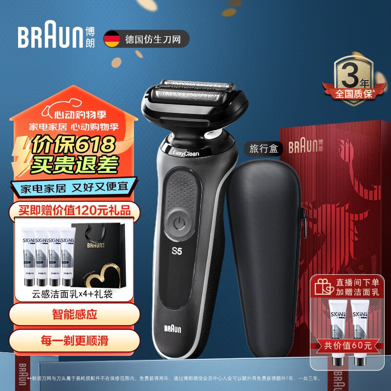 博朗(BRAUN)高效5系礼盒款电动剃须刀刀头往复式刮胡刀电动男士男朋友生日礼物送老公价格:399.00元!