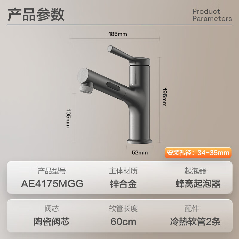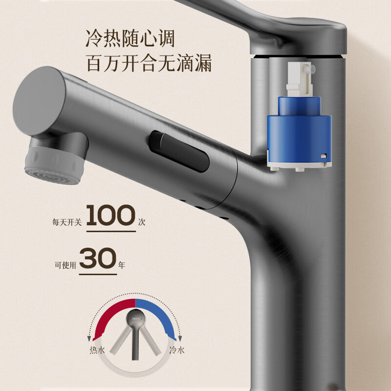 箭牌(ARROW)冷热面盆水龙头多功能抽拉式洗脸盆洗漱台卫生间台盆水龙头 枪灰 带洗漱功能丨可抽拉价格:499.00元!
