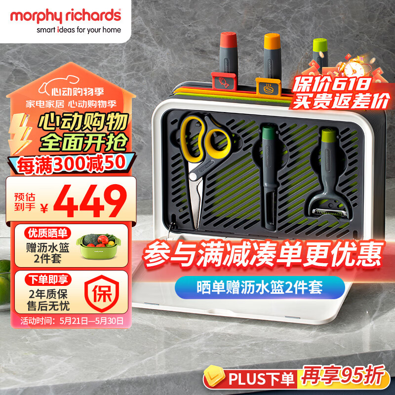 摩飞电器(Morphyrichards)刀筷砧板消毒机 可拆卸清洗刀具 筷子筒紫外线消毒烘干器 3板6刀消毒刀具套装MR1002价格:499.00元!
