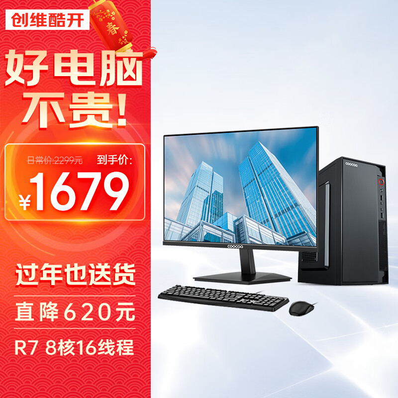 酷开 创维电脑 AMD锐龙R7八核电竞游戏设计台式机电脑主机(R7-4800S 16G+512G固态 GTX750Ti-4G独显)价格:1679.00元!
