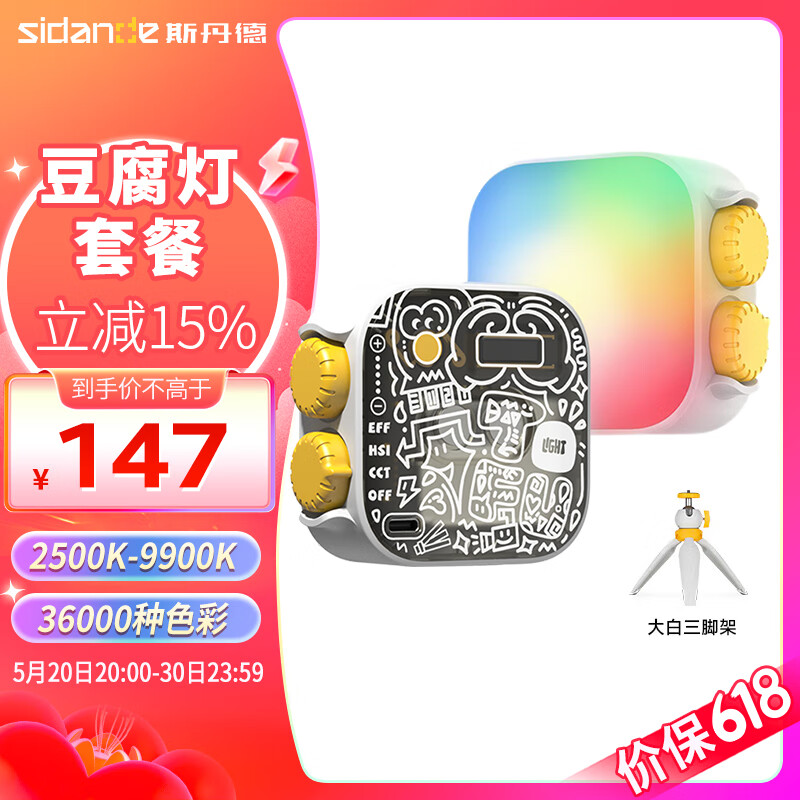 斯丹德(sidande)豆腐灯+大白三脚架套装磁吸RGB补光灯摄影美颜led补光灯口袋灯手持RGB便携直播灯光价格:173.00元!