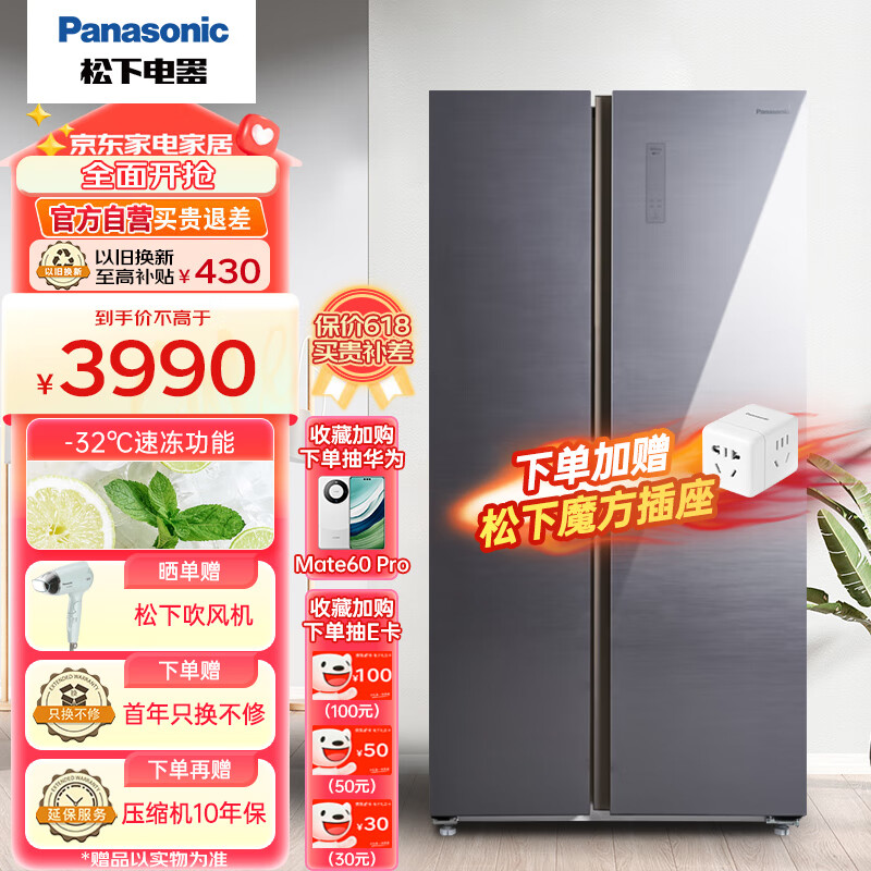 松下(Panasonic)冰箱632升大容量冰箱双开门对开门1级能效银离子kang菌风冷无霜家用冰箱优选NR-EW63WXA-H价格:3990.00元!