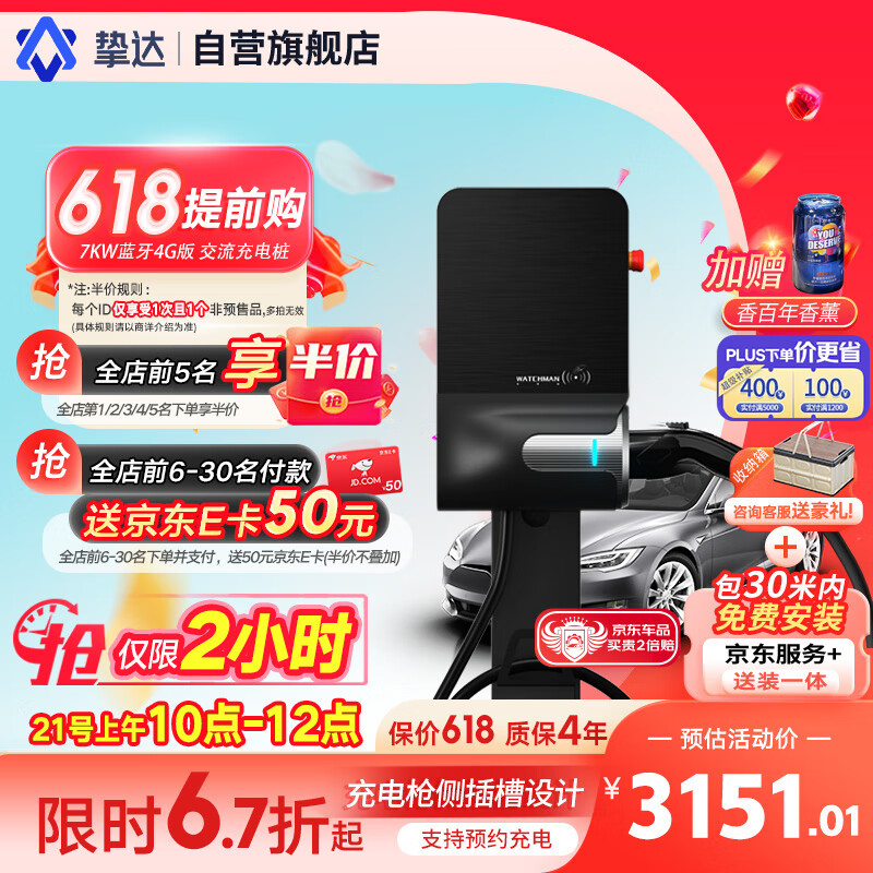 挚达7kw充电桩家用新能源电动汽车充电器枪守望者适配比亚迪极氪吉利特斯拉(送装一体)30米内安装价格:3292.10元!