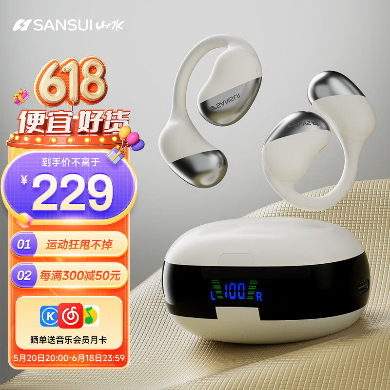山水(SANSUI)TW91蓝牙耳机不入耳开放式运动降噪耳机骨传导概念无线挂耳式跑步超长续航适用华为苹果白价格:228.90元!