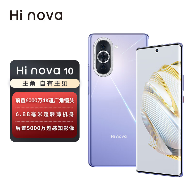 华为智选 Hi nova 10 5G通 前置6000万4K超广角摄像头 6.88毫米超轻薄机身 8+128GB 普罗旺斯手机hinova价格:2812.80元!
