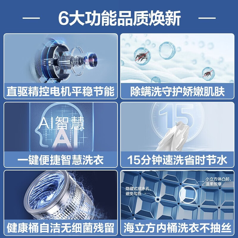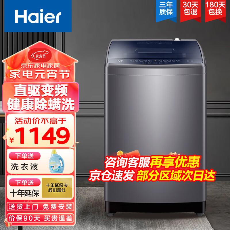 海尔(Haier)9公斤波轮洗衣机全自动直驱变频一级能效节能家用大容量智能预约桶自洁除螨洗XQB90-BM12699[家电]价格:1149.00元!