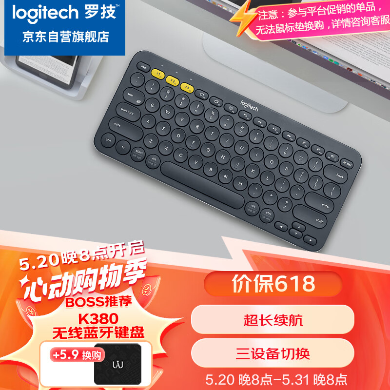罗技(Logitech)K380 键盘 蓝牙办公键盘 无线键盘 女友 便携超薄键盘 笔记本键盘 黑灰色价格:170.00元!